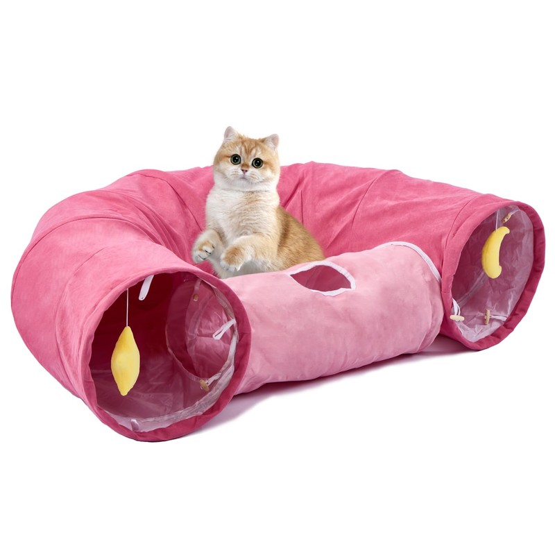 PAOPO Cat Tunnel,Cat Tunnels for Indoor Cats Extra Large Cute Cat Play Tunnel Toy for Cat,Kitten,Puppy,Rabbit,Pink