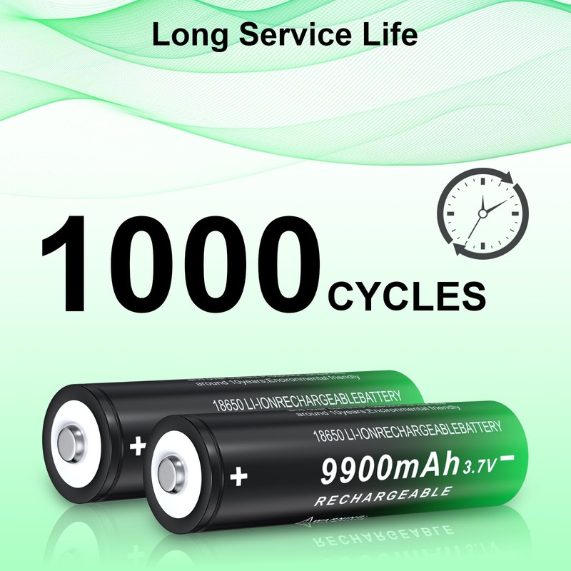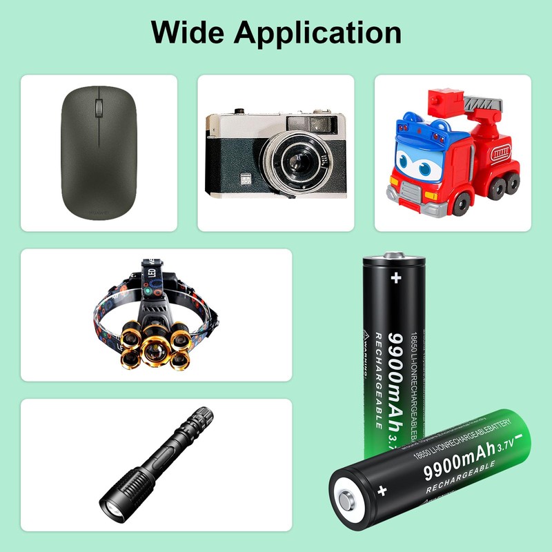 - 【High Performance】With a large capacity of 9900mAh, 18650 rechargeable batteries can last at least 20% longer than other batteries, ideal replacement battery for used devices with high frequency