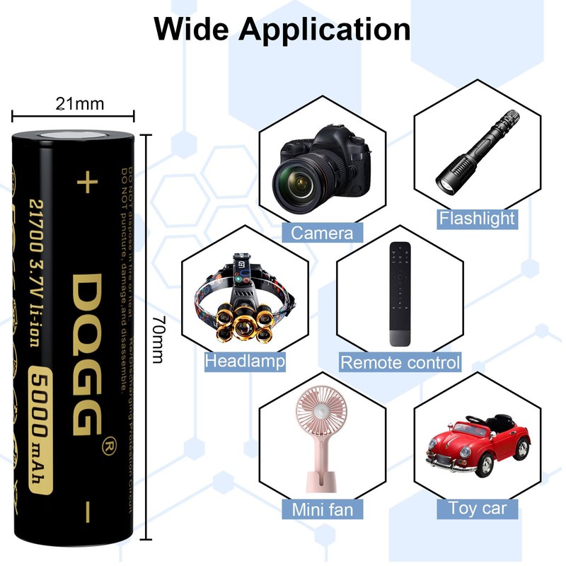 • 【Multi-Application】Long lasting 21700 batteries for headlamps, flashlights, doorbells,alarm clock,toys and other necessary devices.Wake up your device at any time