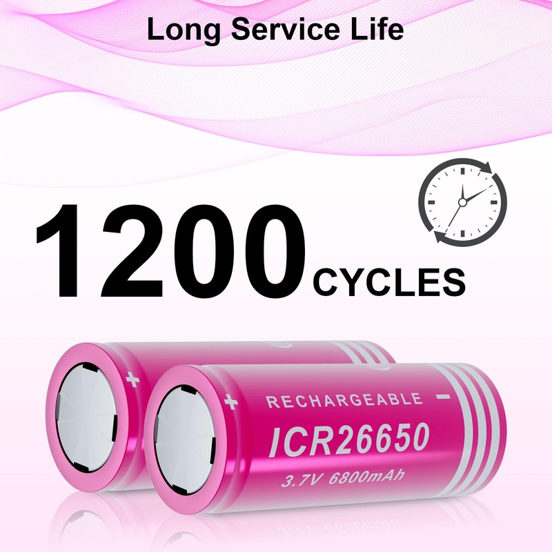 • 【High Performance】With a large capacity of 6800mAh, 26650 rechargeable batteries can last at least 20% longer than other batteries, ideal replacement battery for used devices with high frequency