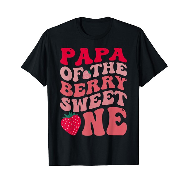 Papa Of The Berry Sweet One Strawberry First Birthday T-Shirt
