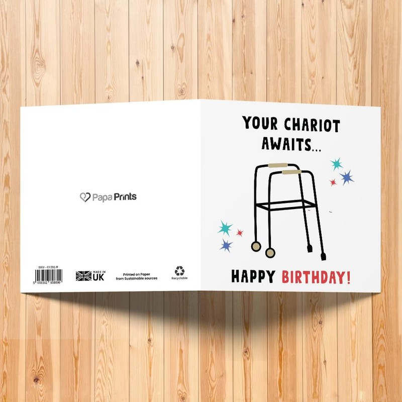 Papa Prints Your Chariot Awaits Happy Birthday Card Funny Dad Birthday Card (150 x 145 mm) Grandad Birthday Cards with Envelope Nanny Birthday Card