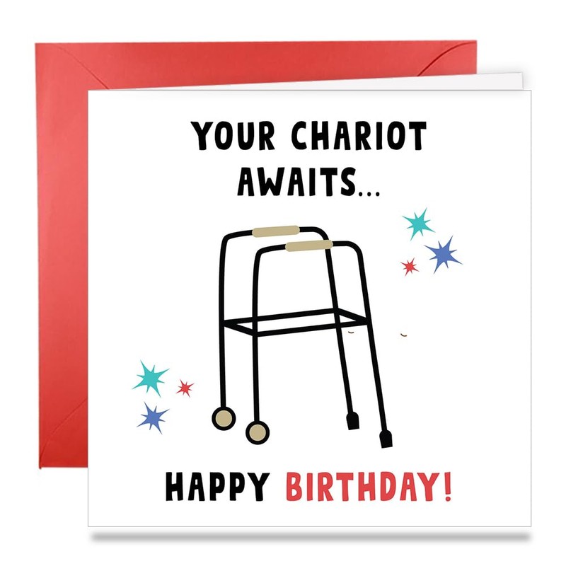 - PACK INCLUDES: Your chariot awaits happy birthday card funny of size 145 x 150 mm with an envelope.