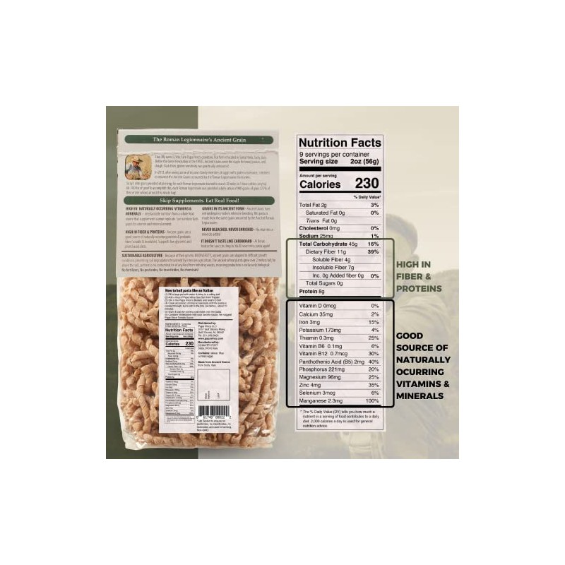 - Ingredients you can See & Pronounce: Ancient Grain Tumminia/Durum whole wheat semolina & water