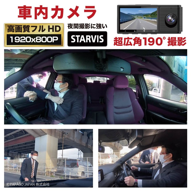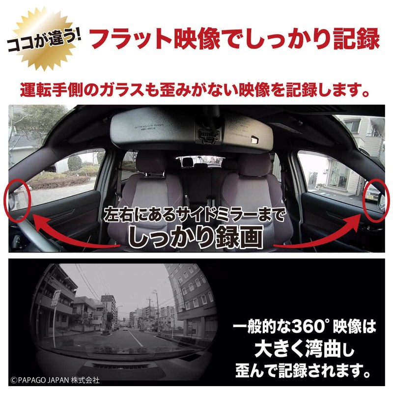 Papago Omnidirectional 490° Drive Recorder, 3 Cameras, Full HD, 2 Megapixels, Sony CMOS Sensor, STARVIS Noise Suppression, LED Signal Compatible, WDR G-Sensor, Parking Monitoring Function, GoSafe 490G