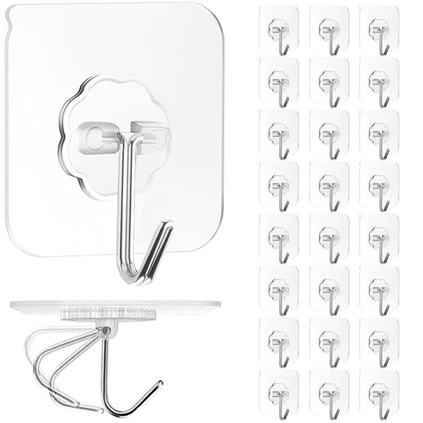 PapaPick Adhesive Wall Hook, 16 piece set heavy-duty thickened self-adhesive hook,33lb max loading,transparent, waterproof, bathroom, outdoor, kitchen, doors, practical tools. (24, 2.3″*2.3″ 33lb max)
