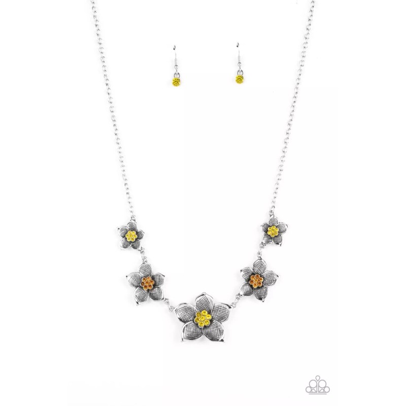Paparazzi Wallflower Wonderland - Yellow Necklace & Earrings