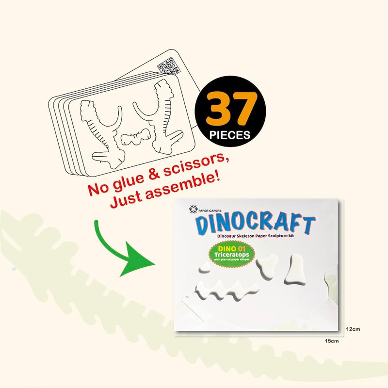 PAPER-CAPERS DINOCRAFT 01 : Triceratops | 3D Dinosaur Paper Skeleton Sculpture DIY Kit | Craft & Learn with 3D Animation | No Glue Needed | Ages 7+ | STEM Craft Toy