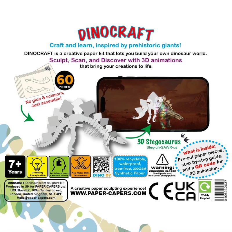- Collect the Full DINOCRAFT Series Each dinosaur is part of a 10-model collection. Developed by PAPER-CAPERS, proudly based in the UK and supported by UCL Innovation & Enterprise.