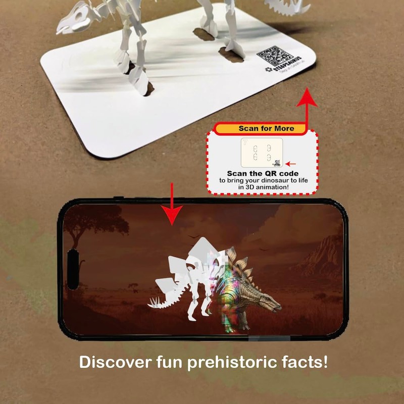 - Learn Through Play with 3D Animation Scan the QR code to unlock custom digital content, including animated visuals and educational dinosaur facts.
