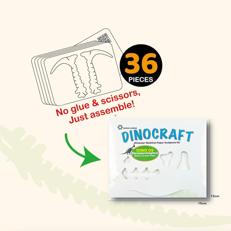 PAPER-CAPERS DINOCRAFT 09: Parasaurolophus | 3D Dinosaur Paper Skeleton Sculpture DIY Kit | Craft & Learn with 3D Animation | No Glue Needed | Ages 7+ | STEM Craft Toy