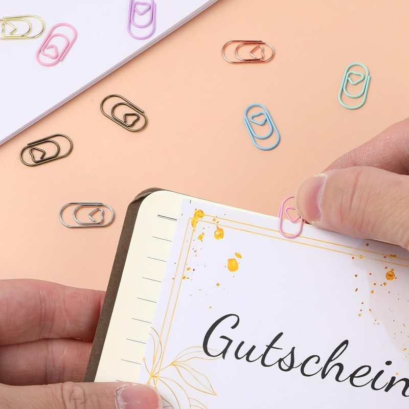 Heart-shaped design. The paper clips heart small metal are decorated with a cute heart design. The small heart paper clips are perfect for Christmas cards or love letters to add a romantic touch.
