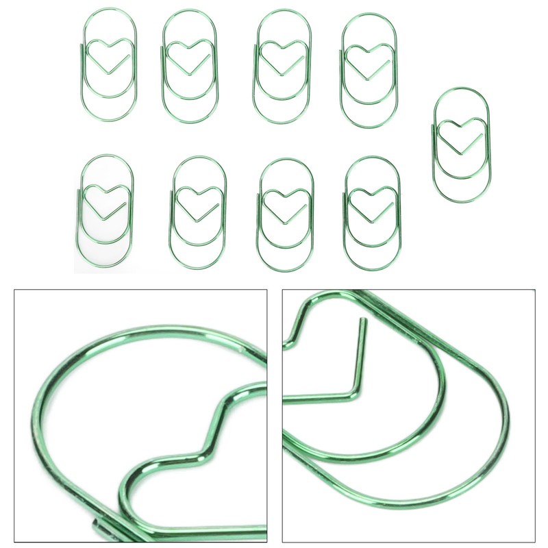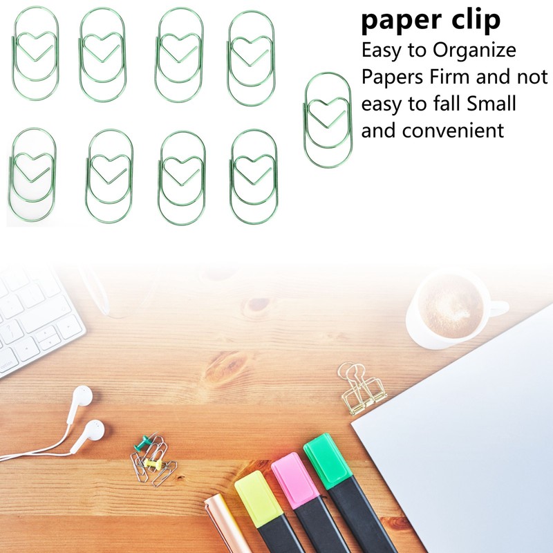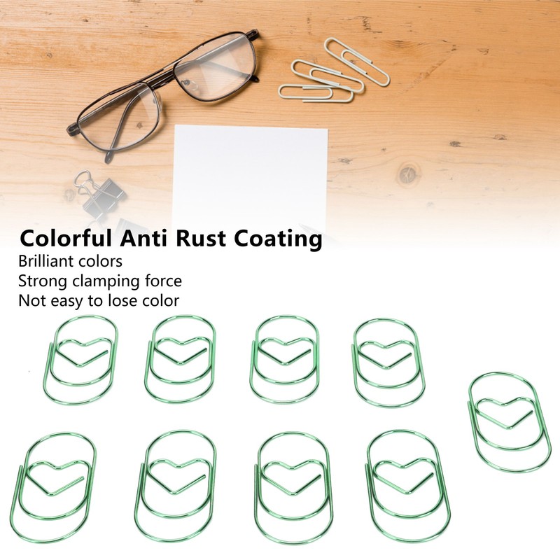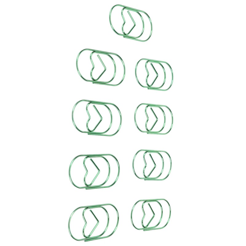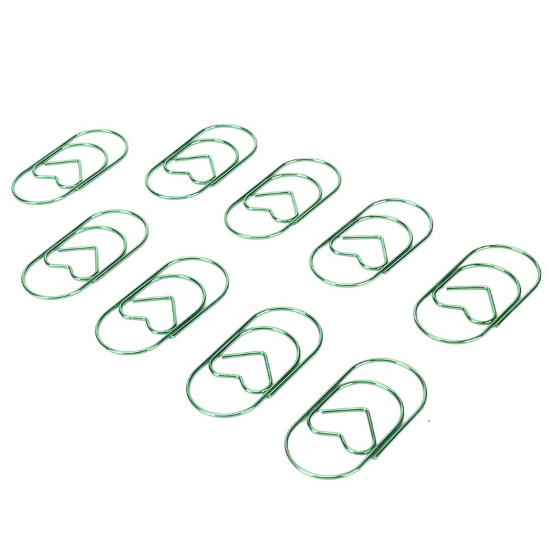 Paper Clips Prevent Slip Rust Proof Love Heart Shaped Decorative Cute Bookmark Metal Paperclips for Documents Green