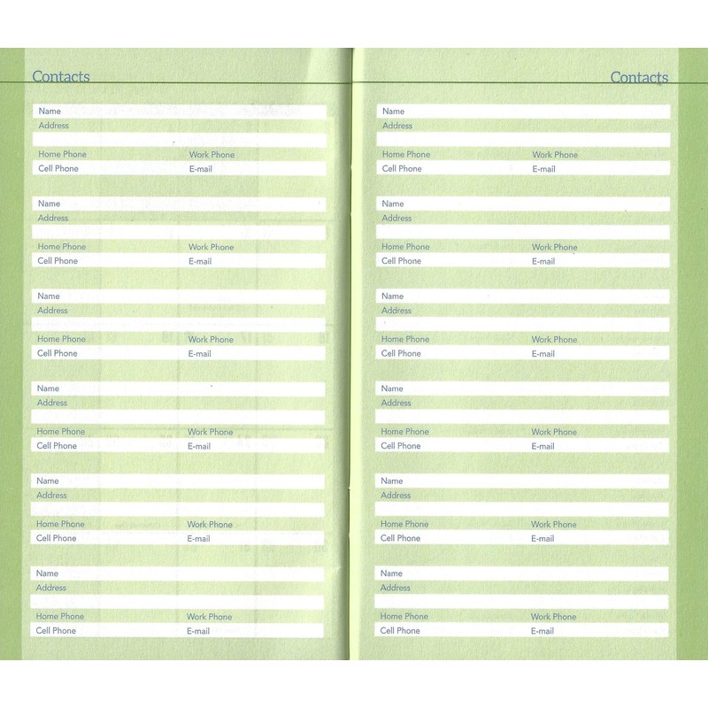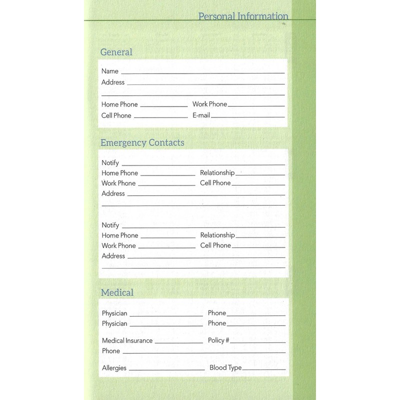 - Includes plenty of pages for contact information and notes. Also includes a personal information page.