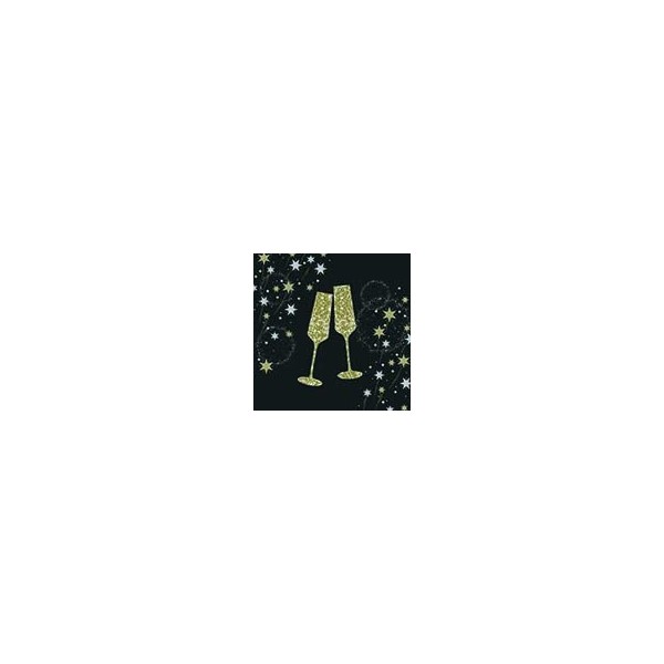 Paper Disposable Party Napkins, Dinner Size, New Years, Champagne Glasses, (Black, 6.5 in, 20-Count)