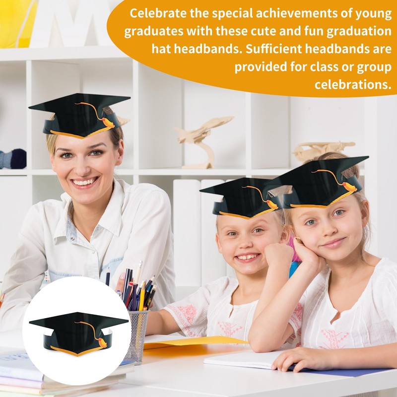 - 5. Versatile and Fun for Various Occasions: These graduation cap headbands are perfect for preschool and kindergarten graduations, class recognition ceremonies, or graduation parties. They can be used for dress-up play, photo opportunities, or as a fun way to honor young graduates. These caps are not only a great party accessory but also serve as memorable keepsakes for every child’s milestone.