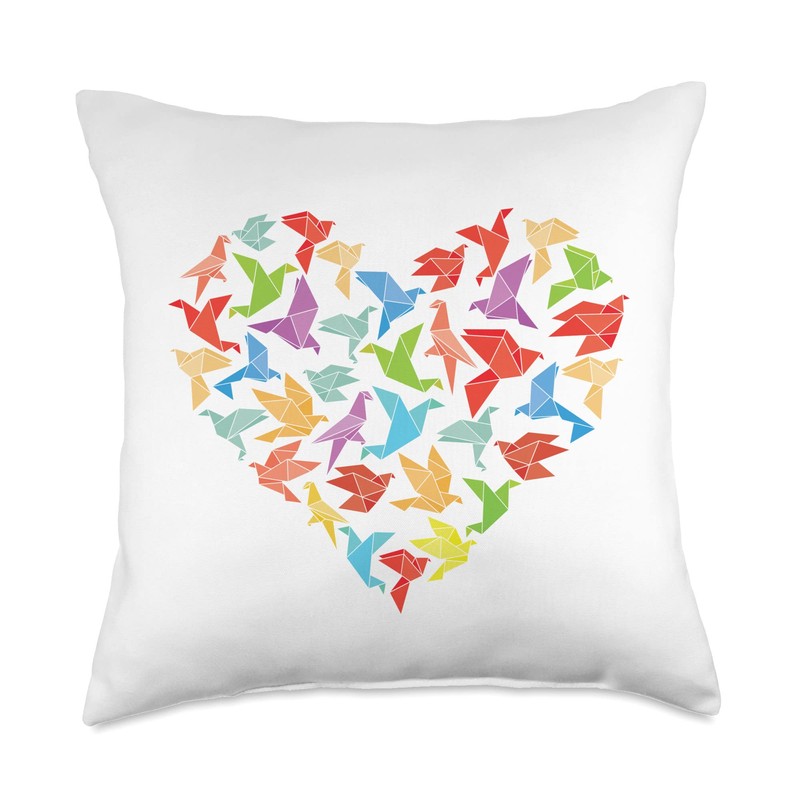 Paper Heart Origami - Birds Paper Folding Japanese Culture Throw Pillow