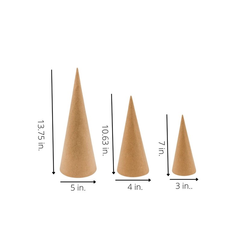Paper Mache Craft Cones Variety Pack 3 Sizes- 13.75 x 5, 10.63 x 4, 7 x 3 Inches (5)