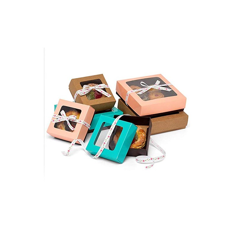 • Baked Goods Packaging - Each kraft cookie box measures 6" x 6" x 1-3/4", featuring a square cello window that measures 4-5/8" x 4-5/8", making them ideal for presenting individual cookies or small treats with a charming rustic touch