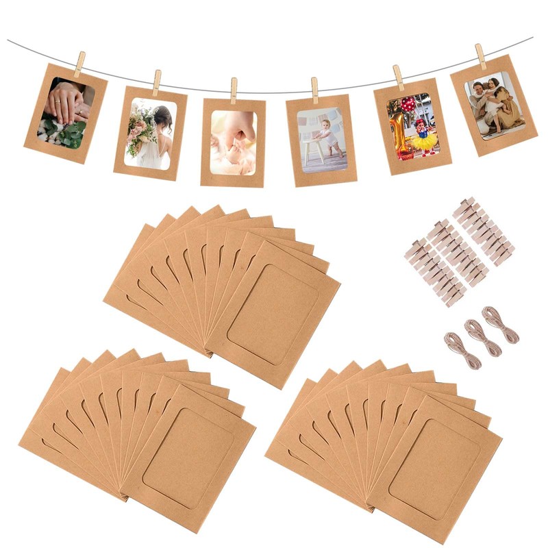 Paper Photo Frame, Picture Frame, Paper Photo Garland, Picture Frame, Wall Hanging, Stylish, Clip, Drawstring, Birthday, Wedding, 6 Inches, Brown, Set of 30