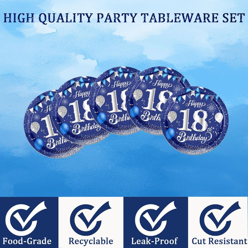- Enjoy the party and save time: you can host a birthday party to impress guests all night. At the end of the party, you can spend more time with family or friends and reduce cleaning time. That's why we designed this blue silver party supplies kit.