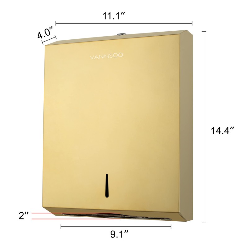 Paper Towel Dispenser, Commercial Stainless Steel Tri-fold/Multi-fold/C-Fold Paper Towel Holder Wall Mount Key (Gold)