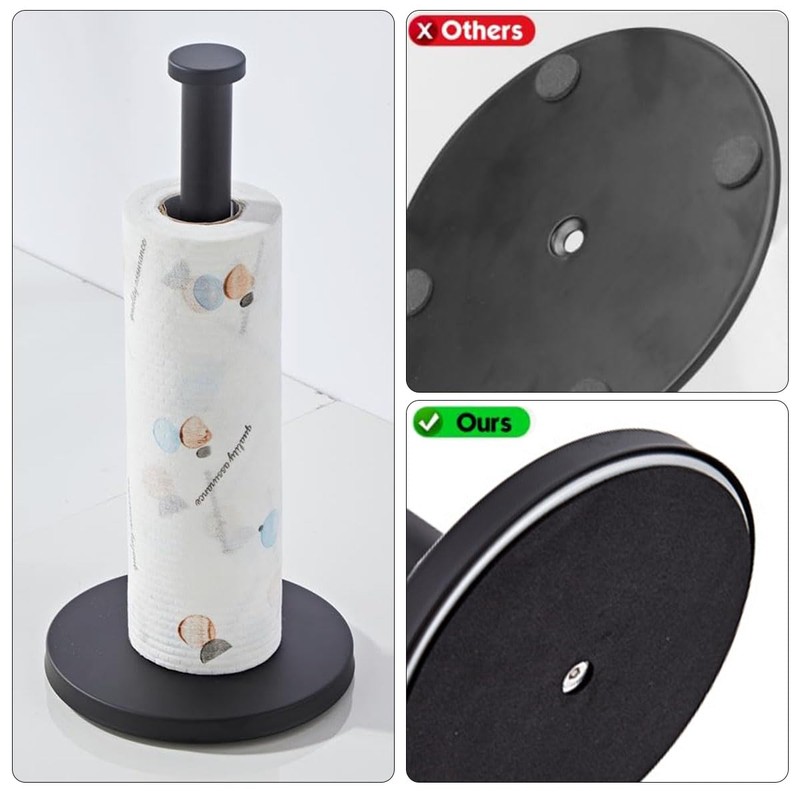 Paper Towel Holder, Black Roll Holder Organizer, Steady Countertop Paper Towel Holder with Weighted Base for Kitchen Roll Holder (Black)