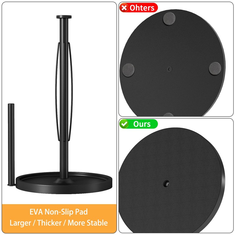 - Full-Coverage EVA Grip Base - Kitchen roll holder features complete EVA non-slip padding that firmly adheres to all countertops. Invisibly protects surfaces from scratches while maintaining aesthetics and functionality