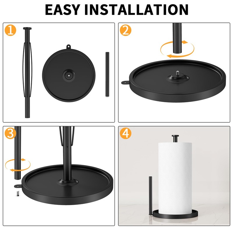 - Quick-Install Design - The Black paper towel holder can be assembled in seconds—simply twist-lock the rod into the base. Ready to use instantly. Please feel free to use it, if there is any problem, please contact us in time