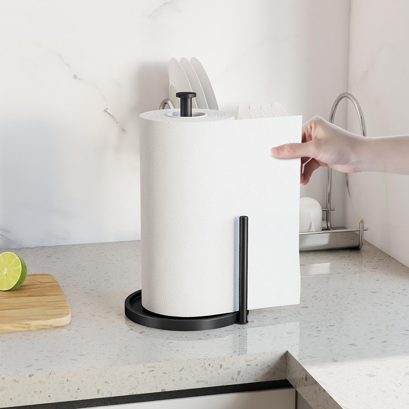 - Effortless One-Handed Use - The main rod support design of the paper towel stand ensures stable paper roll rotation. Pull with one hand for a clean, instant tear—keeping your other hand free. Ideal for kitchens, bathrooms, and apartments