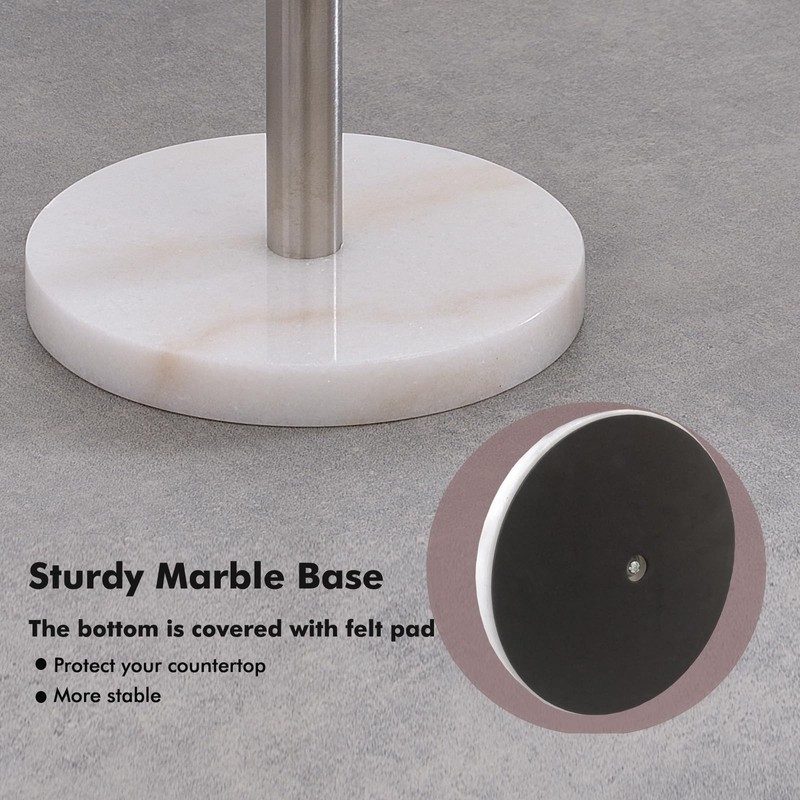 - Sturdy weighted marble base, no tipping over when ripping paper towel off with one hand.