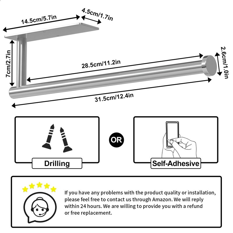 - 【After Sales Service】If you need any help from us or have any questions about the under-cabinet paper towel holder, please feel free to contact us, we will provide you with a satisfactory solution within 24 hours.