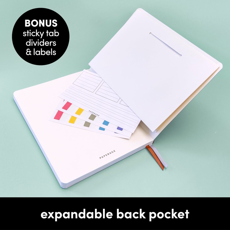 - INNER POCKET WITH BONUS LABELS & TABS: Includes an expandable inner storage pocket with 2 sheets of colorful repositionable tabs to organize your notebook & 1 sheet of paper labels to personalize your journal.