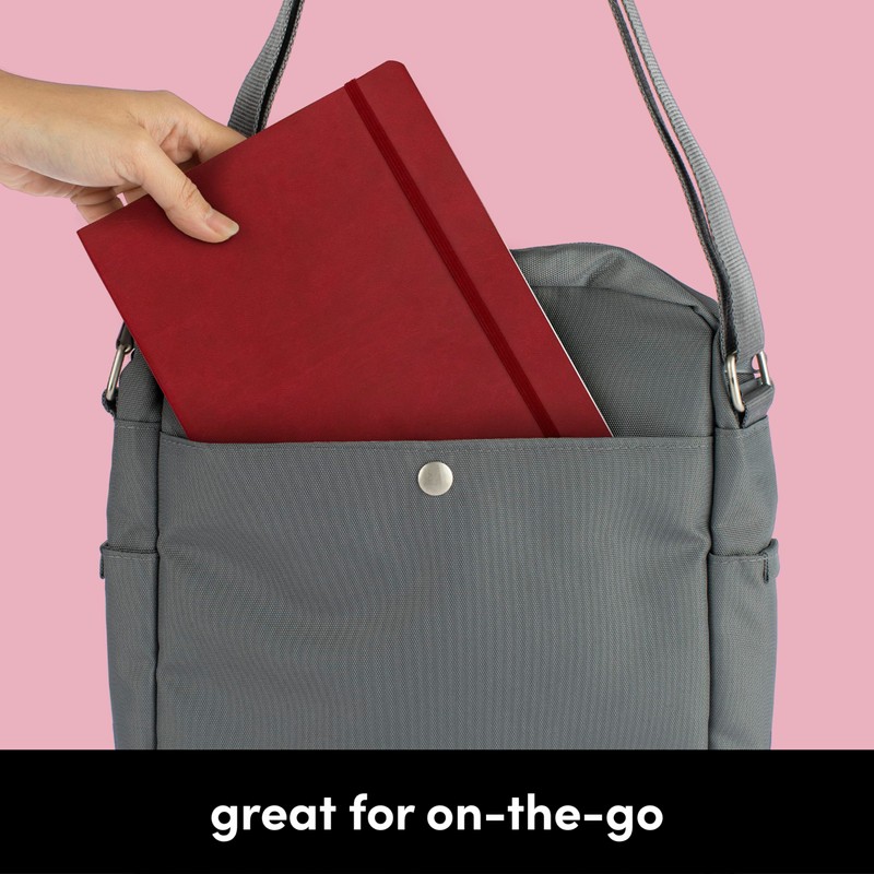 - SMALL SOFTCOVER NOTEBOOK: 5.6" x 7.9" soft, vegan leather notebook featuring 176 college ruled lined pages, inner expandable pocket, sheets of labels & reusable sticky tabs, 2 ribbon bookmarks & an elastic closure band.