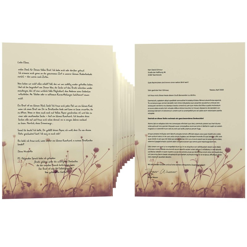 Writing is "in" again, everyone is happy about greetings that still reach him by post. With our high-quality and affordable stationery sets, you can give joy to your relatives and friends or your business partners. The motif paper can be written on by hand or simply printed with a laser or ink printer.