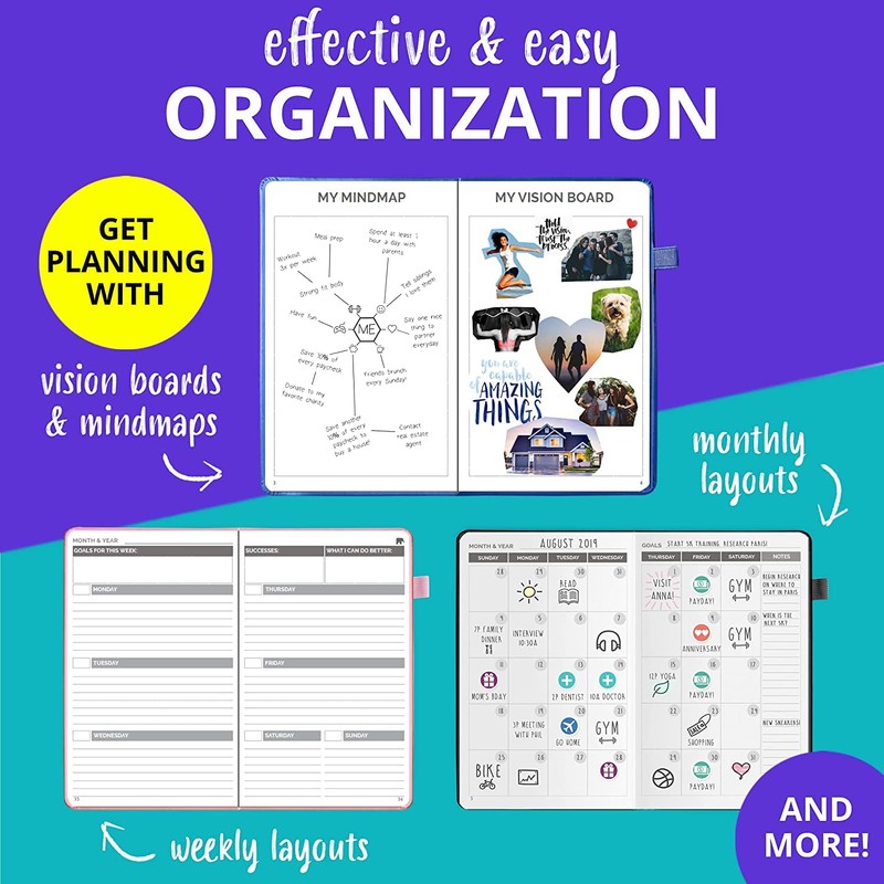 • Visualize: Our mind map and vision board encourage you to pursue a 90 day or monthly gratitude plan to manifest the best year ahead! With its useful layout, our undated monthly planner ensures that productivity and successful action go arm in arm.