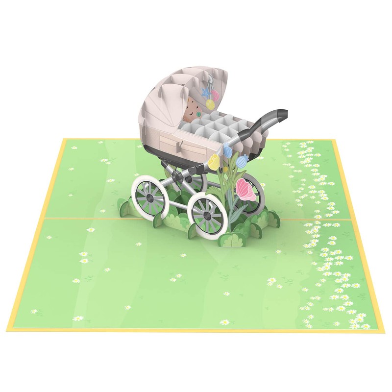 papercrush papercrush® Pop Up Karte zur Geburt mit Kinderwagen - Neutrale 3D Geburtskarte für Mädchen & Jungen, Glückwunsch zum Baby, Glückwunschkarte oder Geldgeschenk zur Geburt, Handgemachte Babykarte