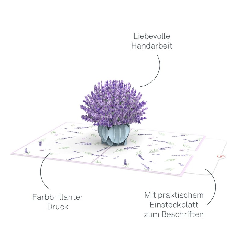 papercrush® Pop-Up Card Lavender – 3D Flower Card for Wife, Girlfriend & Mother (Birthday Card, Get Soon, Get Well Soon, Thank You) – Pop-up Greeting Card with Flowers for a Round Birthday