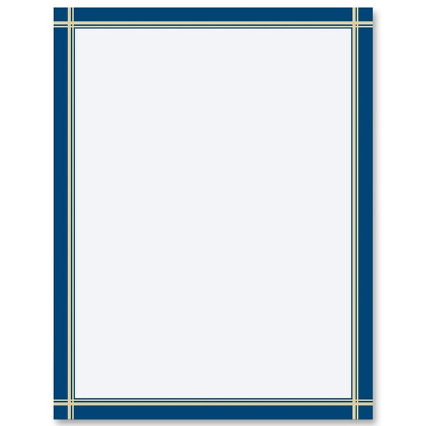 - DETAILED GRAPHICS: Professionally Designed Elegant Royal Blue Duo-Lined Gold Stationery measures 8.5 x 11 inches and comes 25 sheets per box. Printed on acid-free paper that will not become discolored or brittle over time. Made in U.S.A.