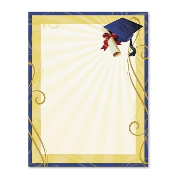 - DETAILED GRAPHICS: Professionally Designed Glowing Achievement Graduation Stationery measures 8.5 x 11 inches and comes 25 sheets per box. Printed on acid-free paper that will not become discolored or brittle over time.