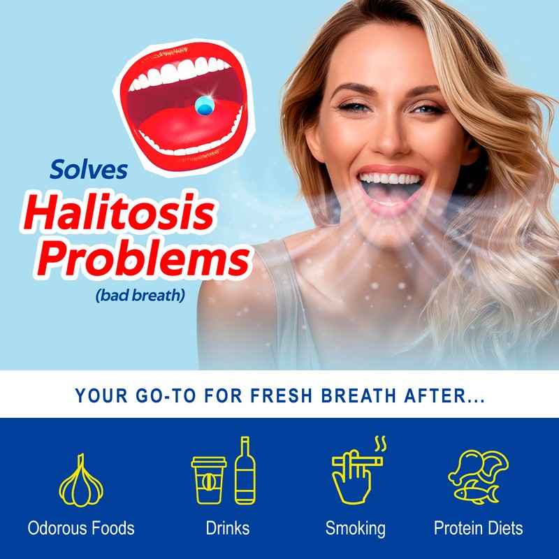 🧪 Advanced Formula: Combat bad breath right from the source. The outer capsule pops in your mouth, releasing a burst of freshness, while the inner capsule goes directly into your gut, addressing bad breath from within.