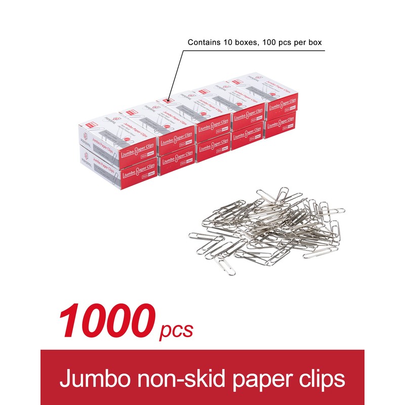 - 👉1000 pcs - Contains well-packed 10 boxes of jumbo size non-skid paper clips, 100 pcs each. Great for bulk purchasing!