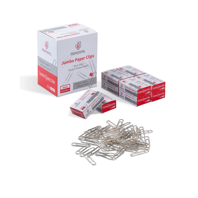 PAPERPAL Jumbo Paper Clips Nonskid, 1000 Large Paper Clips (10 Boxes of 100 Each), Bulk Paperclips for Office School & Personal Use, Daily DIY, 2" Silver Heavy Duty Non-Skid Paper Clips Jumbo Size