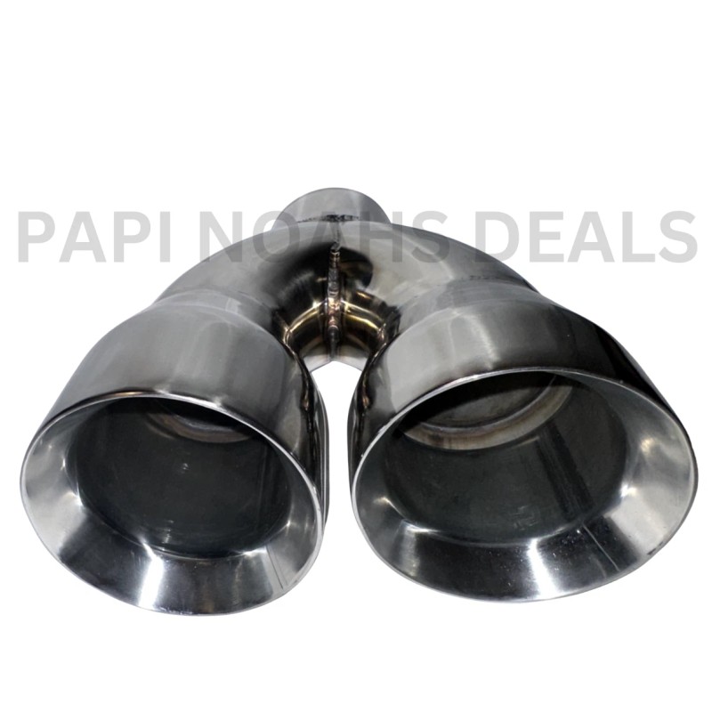 Papi Noah Stainless Steel Weld-On Exhaust Tip 2.5" Inlet 4" Dual Outlet 9" Long Silver NEW