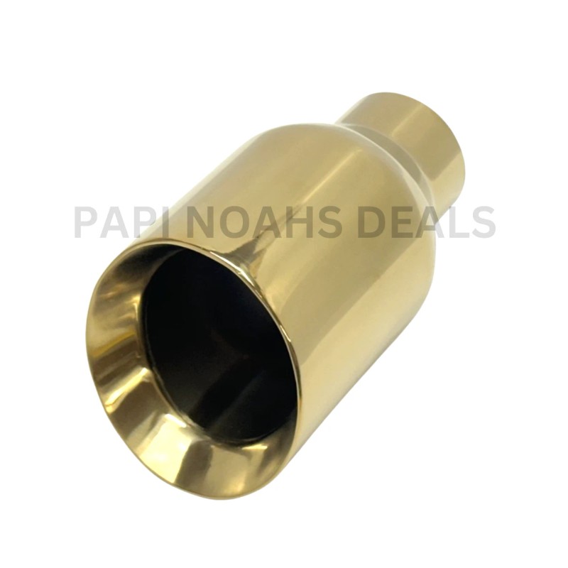 PAPI NOAHS DEALS GOLD 2.5" Inlet 4" Outlet 7" Long Dual Wall Polished Stainless Steel Exhaust Tip