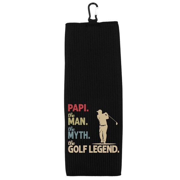 Papi the Man the Myth the Golf Legend Tri-fold 100% Microfiber Waffle Weave Golf Towel for Grandpa Dad