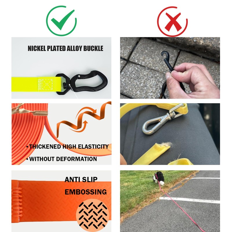 - Waterproof Dog Training Leash:Our waterproof dog traction rope with waterproof coating,designed as a waterproof leash for dogs. This traction rope remains lightweight and strong even in wet conditions,perfect as a long leash for dog training or everyday training leash. Weatherproof,easy to clean,and odor-resistant,it enhances your dog’s recall—great for outdoor activities like hiking or beach play. It promotes better subservience,making it fit a dog training leash for all breeds