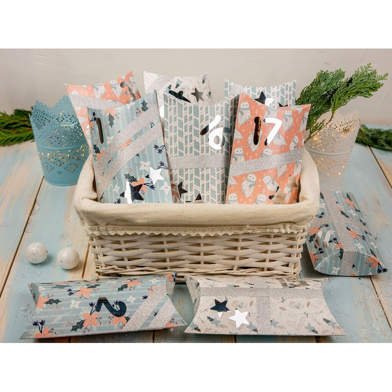 - 24 Advent Calendar Pillow Boxes - with Washi Tape and Silver Number Stickers - 24 Cardboard Cushion Boxes - DIY Advent Calendar for Filling and Designing