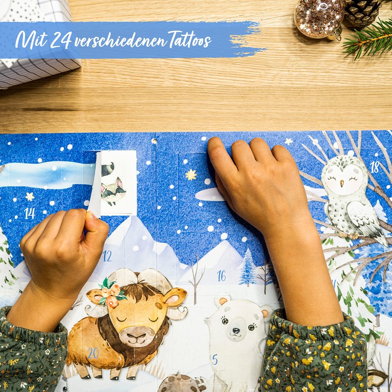 - Advent calendar with 24 tattoos - child-friendly designs - winter animals - set 3.