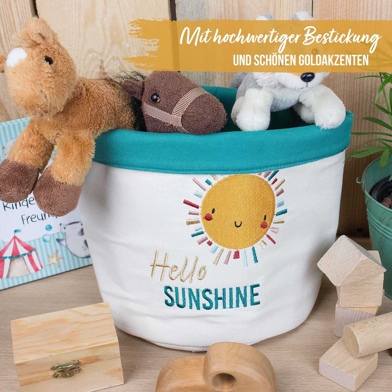 Papierdrachen Fabric Utensilo | Sun Motif | Storage for Toys - Children's Room Decoration | Toy Basket - Canvas Fabric Basket 21 cm - Set 2